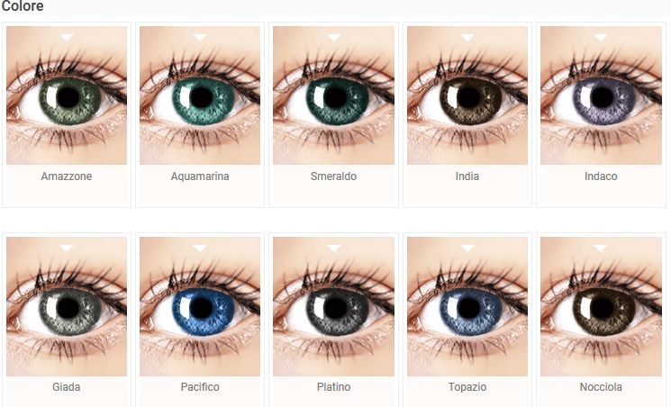 Disponibili nei colori: • Amazon • Aquamarine • Emerald • India • Indigo • Jade • Pacific • Platinum • Topaz • Dark Hazel